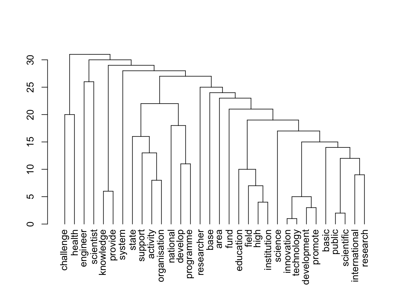 We combined two methods - word similarity graphs and stm modelling) to be able visually explore topics and words’ connections in the aims and missions documents.